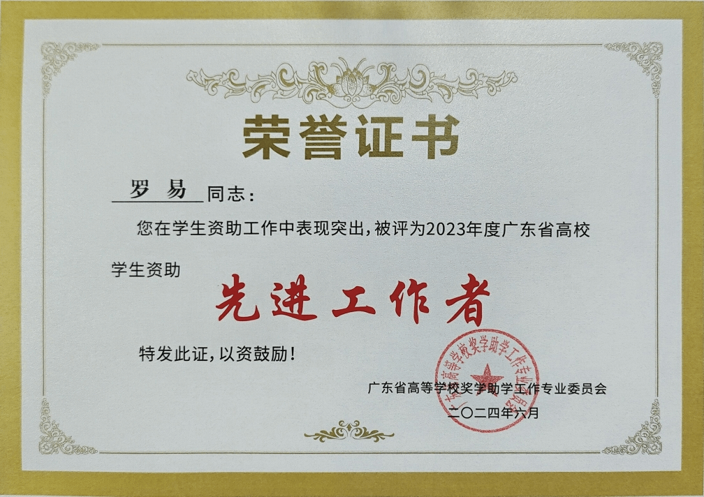 3.我院辅导员罗易获2023年度广东省高校学生资助先进工作者