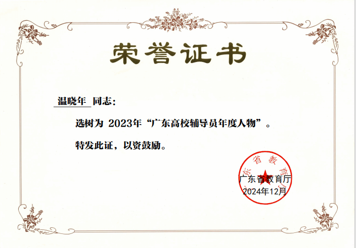 1.我院辅导员温晓年获“2023年广东高校辅导员年度人物”
