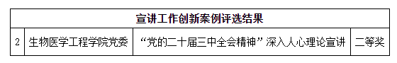 根据《关于征集全校理论学习和宣讲工作创新案例的通知》(宣传通〔2024〕63号)要求,经各基层党委(党总支部)推荐、宣传部审核、校外专家评审,我院“党的二十届三中全会精神”深入人心理论宣讲荣获宣讲工作创新案例二等奖。