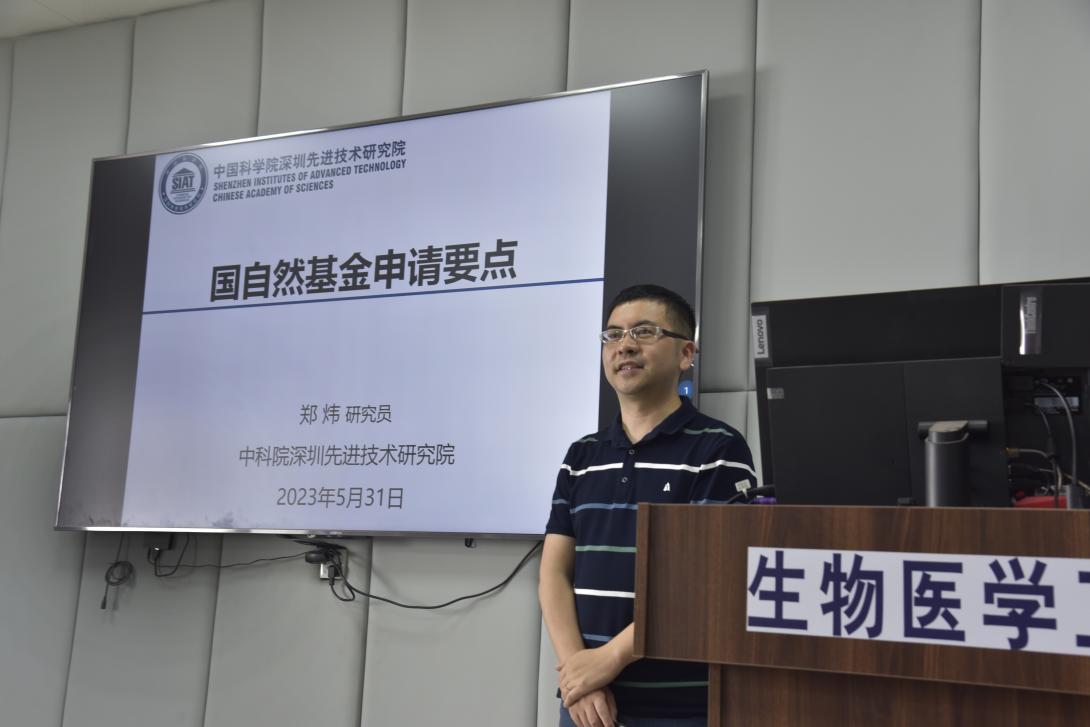 首先进行分享的是郑炜教授,他担任中科院深圳先进院医工所副所长、生物医学光学与分子影像研究中心主任,广东省生物医学光学影像技术重点实验室主任,同时也是国家自然科学基金优秀青年基金获得者。他分别从国自然基金的重要性、国自然基金申请策略、国自然基金的申请技巧等方面分享关于如何申请国自然基金的专业性建议。通过不同案例分析的展示,再结合自身的经验,深入浅出地分析了国自然基金申请书的撰写要点,使师生们能够学习到申报国自然基金的经验。同时,郑炜教授给出具体如何申请国自然基金的规划,呼吁老师们把握好时机,期待在将来成功申报国自然基金项目。