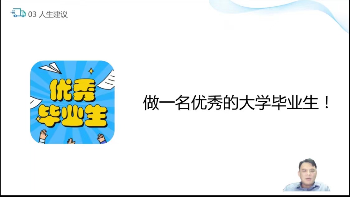 分享会的最后阶段,庞经理从正确理解成功与幸福、成功需要怎么做、现阶段做一名优秀的毕业生三方面向同学们提出了人生建议。庞经理建议我们在学习与工作的每一阶段为自身设立一个短期目标与长期目标,每往前一步都是成功,都是在幸福路上更进一步。在成长的不同阶段,我们需要认清自己,庞经理特别提到了在毕业与工作发展阶段,好的选择比盲目的努力更为重要,要在合适的时间做合适的事情。庞经理为我们阐述优秀毕业生的现代定义是:德智体美劳全面发展,对于即将大三的同学来说,还有一年我们将离开校园踏入职场,在剩下的学习生涯中,同学们应做好每一件事,培养一个特长,锻炼自己的能力。最后,庞经理深切希望母校能够成就更多优秀的企业家,扩大学校专业的社会影响力,同时感谢母校发出的邀请给同学们进行分享。