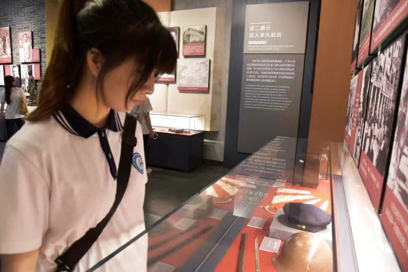 继而,队员们仔细观看了展馆展示的抗日时期详实的历史资料,其字里行间讲述了东江纵队革命先烈用鲜血和生命保家卫国可歌可泣的抗日事迹,大家都为此感到震撼和感动。陈列柜中放着曾经历过战争的历史文物,墙壁上一张张战士们奋勇抗敌的图片和一个个动人的抗战故事,同学们置身其中,仿佛穿越时空身临其境,来到当时烈士前辈们浴血奋战,无畏抗敌的壮烈场面,让大家真切感受到了那段艰难的峥嵘岁月。
