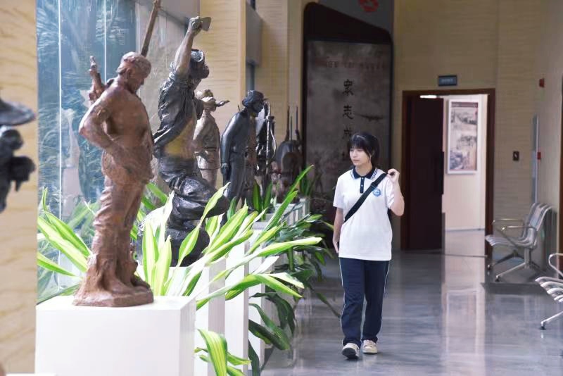 踏入东纵纪念馆,一股浓厚的革命历史气息便迎面而来。一件件革命文物映入眼帘,耳边传来讲解员解说的声音,同学们认真聆听着,字字句句入心,动情地感染了同学们的内心。里面还有一些烈士雕像,大家观望着,心中的敬佩之意油然而起。