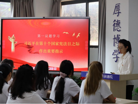 2023年12月12日下午,我院2021级学生党支部于求真书院开展新一批预备党员的入党宣誓大会暨集中学习习近平在第十个国家宪法日之际重要指示精神,党支部全体成员参加了本次会议。会议由党支部书记刘怡婷老师领学。