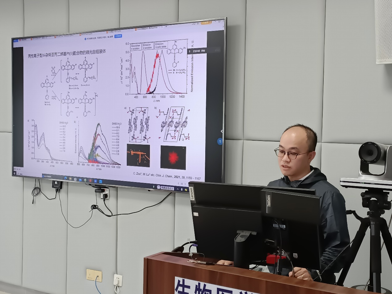 邹超教授首先介绍松山湖材料实验室功能配位材料及主要研究方向;然后从基于金属间(Pd,Pt等)相互作用以构建磷光组装体化学等方面展开阐述,进一步为团队的研究和应用提供了新的思路和方向;最后介绍新设计构建结构稳定的多孔金属有机框架材料(MOF),以及寻求在生物医学工程领域的应用合作。