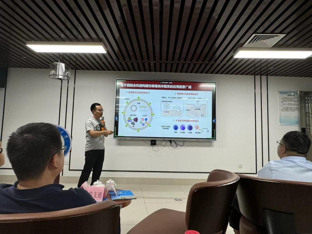 许丛飞教授聚焦细胞靶向膜融合的仿病毒纳米载体,深入讲解了囊泡通过膜融合进行物质转运的机制,探讨了包膜病毒的膜融合感染过程。许教授强调,仿病毒颗粒T-FVLP能够有效与T细胞膜融合,并提出了一种基于纳米载体的CAR-T细胞体外制备新方法。该方法利用CLAN递送CRISPR-Cas9/CAR制备CAR-T细胞,显示出优异的应用前景。此外,他还介绍了DC靶向融合的防病毒颗粒在mRNA疫苗胞质传递中的应用,成功提升了传递效率60倍。最后,许教授展示了构建肌肉靶向的防病毒颗粒MuVLPcas9在糖尿病小鼠模型中的应用效果,显著改善了小鼠的运动能力。