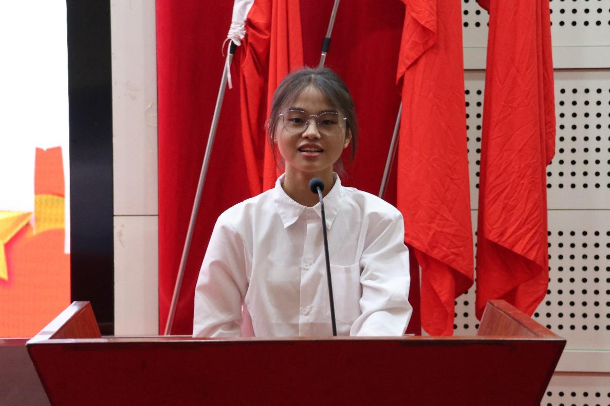 在统一奏唱完国歌后,学院党委张美艳副书记为本次大会致辞。张书记强调,过去一年学生会组织在学院党委的领导,校学生会和学院团委具体指导下,紧密围绕学院中心工作,积极践行社会主义核心价值观,主动参与学院管理,自觉维护学院的改革、发展与稳定,在思想政治教育、校园科技文化、社会实践拓展及自身组织建设等方面取得了突出的成绩,在未来,希望学院学生会继续响应上级组织和学院党委的号召,以主人翁的精神,加强自身组织建设,“全心全意为同学服务”,与时俱进,开拓进取。