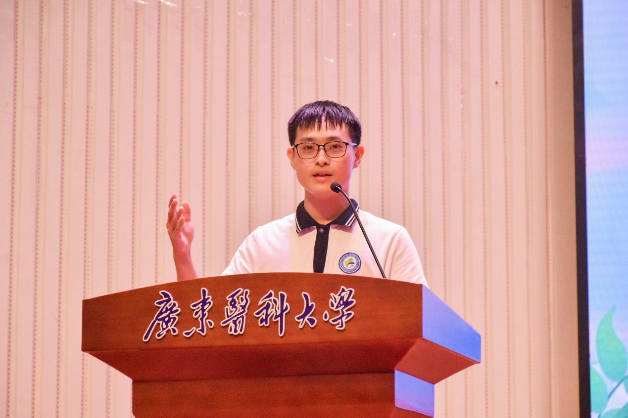 紧接着,毕业生代表黄敬凯同学向学校、学院、老师以及同学们表示衷心感谢,重温了四年在母校成长的点点滴滴。作为首届智能医学工程专业毕业生,黄敬凯同学不忘“立志立德,求真求精”的校训,在学院老师的指导下参与了各类学科竞赛,结交了很多志同道合的伙伴,全面提升自身专业技能的同时,也收获了宝贵的友谊,在学校留下了很多珍贵的回忆。黄敬凯同学号召各位毕业生要怀揣梦想、脚踏实地、淡定从容,带着母校的殷切期望去成就自己、成就他人、成就世界。